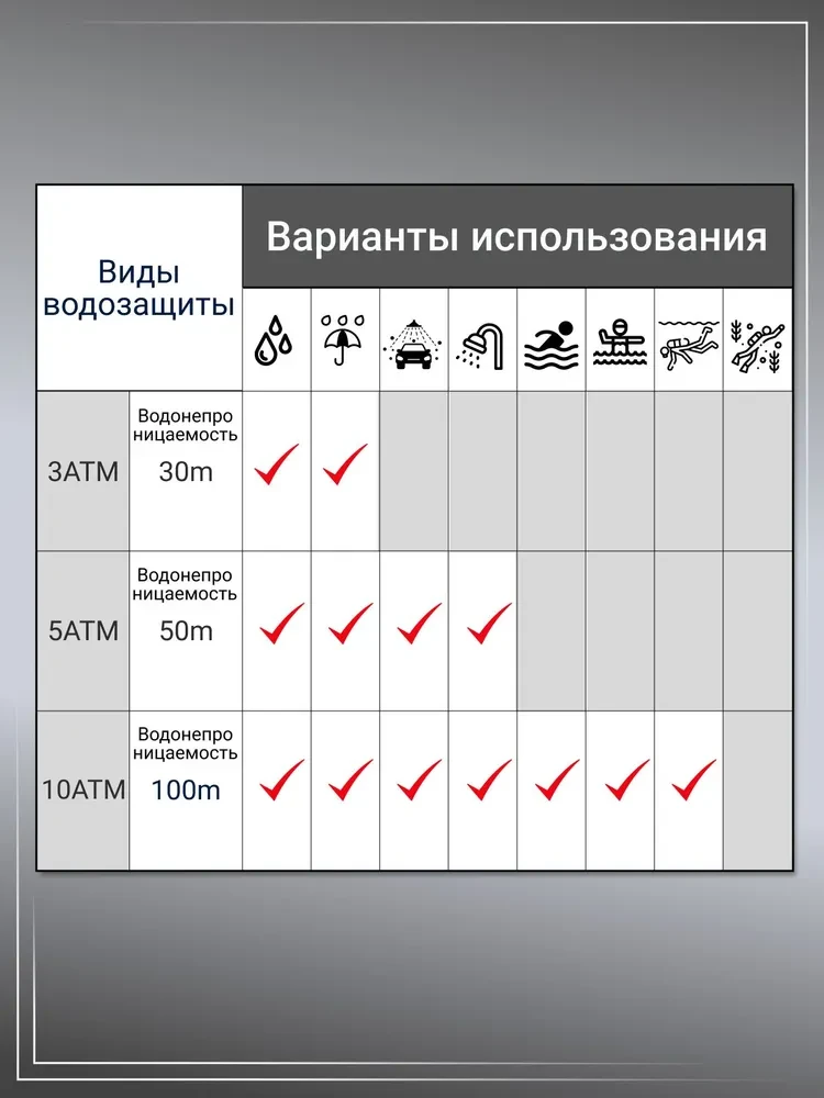 | Класс влагозащиты | WR 50 м (5 атм) |